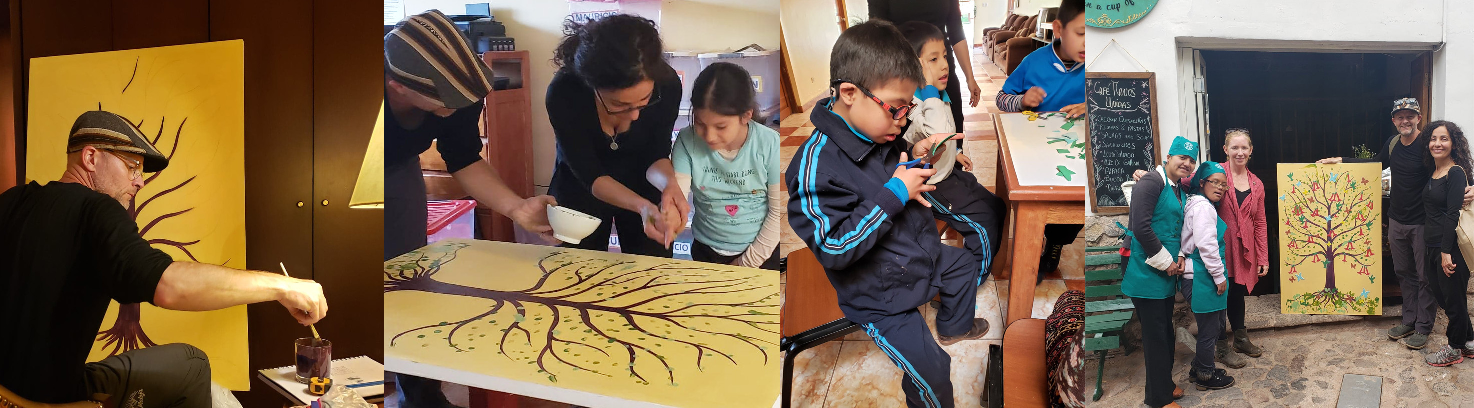 Our second day at the school was incredible and what I would consider the highlight of my art career thus far. Working with every child on the campus, we created a collaborative masterpiece that we titled Pachamama's Tree. The activity and dedicated moment per child, seemed to light up their personalities even further. After we finished the various steps of the work, we would take brief breaks for futbol, during which time one of the more endearing moments occurred with one of the younger kids. She was kicking the ball and had quite a strong foot, and launched one over a high fence. When I acted confused as to how I might retrieve it for us, she motioned for my head. I bent down and she promptly snatched my hat off my head and threw it over the fence with the ball, as if to say, "you'll figure it out now, won't you ; ) We all laughed so hard. It was a fittingly light finish to an emotionally exhilarating day.