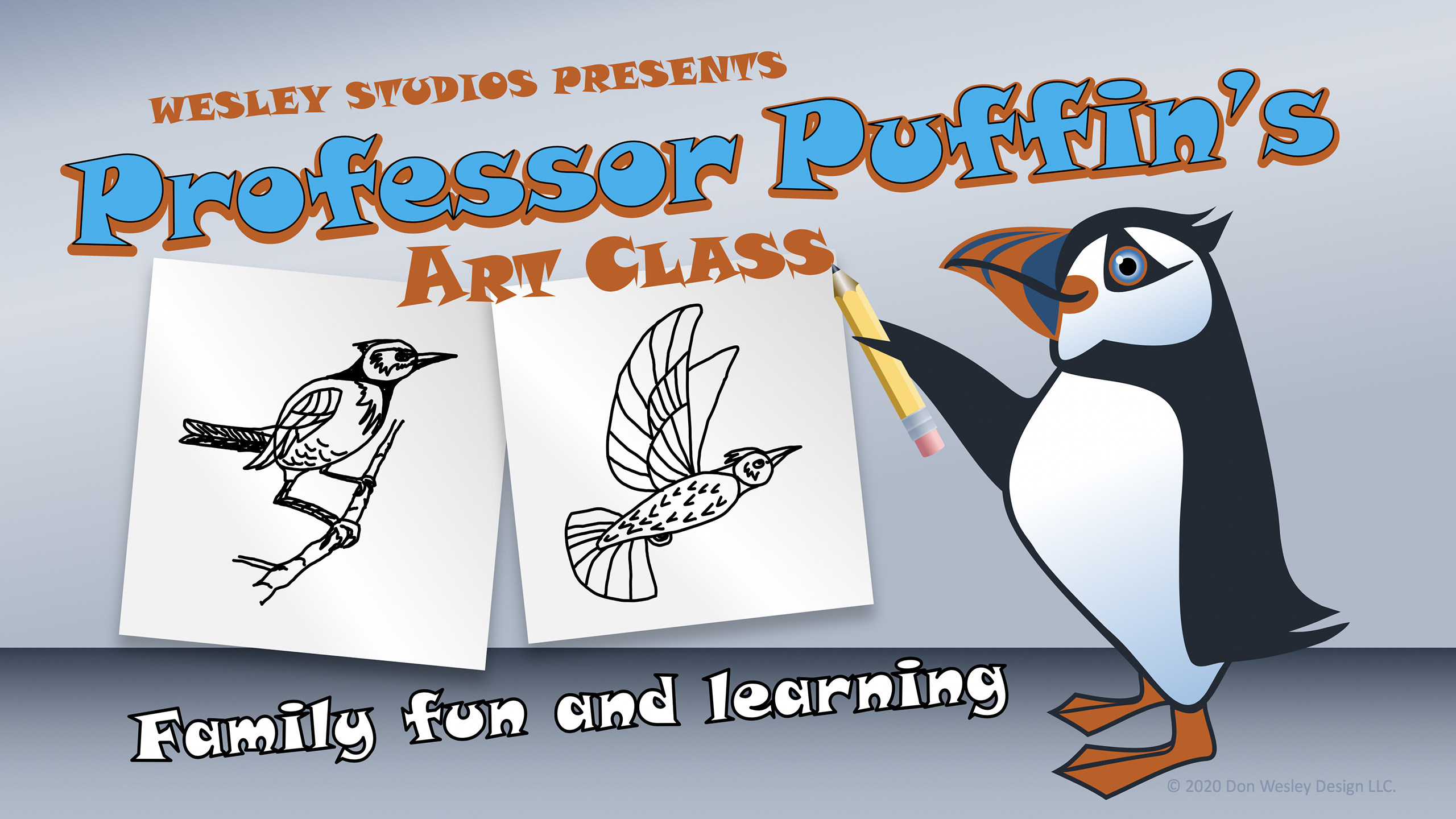 SEDRO WOOLLEY, WASHINGTON - It has been a chaotic couple of months for us all due to the onset of Covid-19; especially for families with children cooped up at home. To help keep kids entertained and excited about learning something new, I have created a video series of art lessons as Professor Puffin. These video lessons teach kids how to draw birds, so they can begin to develop an appreciation for nature and art. I have created two initial lessons: "Draw a Bird", and "Draw a Flying Bird". The lessons are filmed here at Wesley Studios in Day Creek, and use props specially made for the classes to help keep the kids and parents entertained. You can tune in to Professor Puffin on his YouTube channel at Professor Puffin's Art Class. Please subscribe, share the link with friends and family, and share your Professor Puffin drawings with us all online. There will be more lessons to come. Stay safe and virtual hugs to you all.