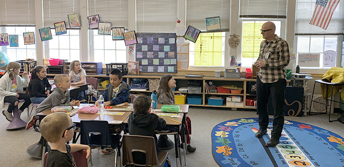 Another fun class I recently taught through the program, coincided with the Edison Elementary 8th grade science classes, and ther study of genetics. For about 40 students I created a partner project where teams of two decide the genetic profile for a pair of short-eared owls. Using the profiles of the two parent owls, the students then created two offspring. Their creations were a delight and you could see the student's both learning and developing storylines along the way.
